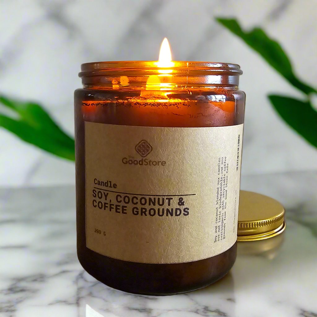 Get ready to fill your space with a delicious aroma that's always brewing! The Good Store Coffee Soy Candle's scent is upcycled from our in-store coffee grounds, embracing sustainable and eco-friendly practices. You can feel good about your purchase while enjoying a delightful fragrance in your home.