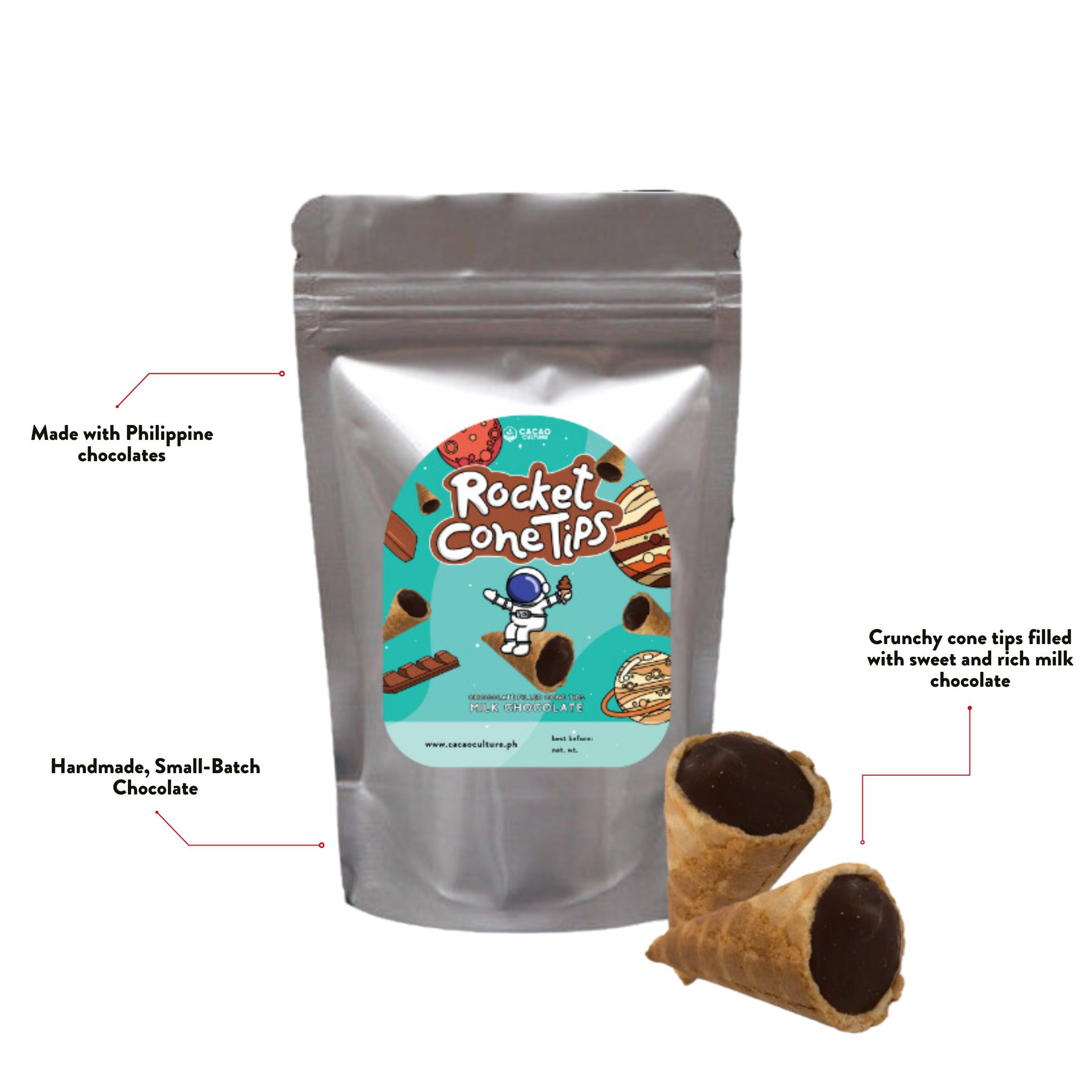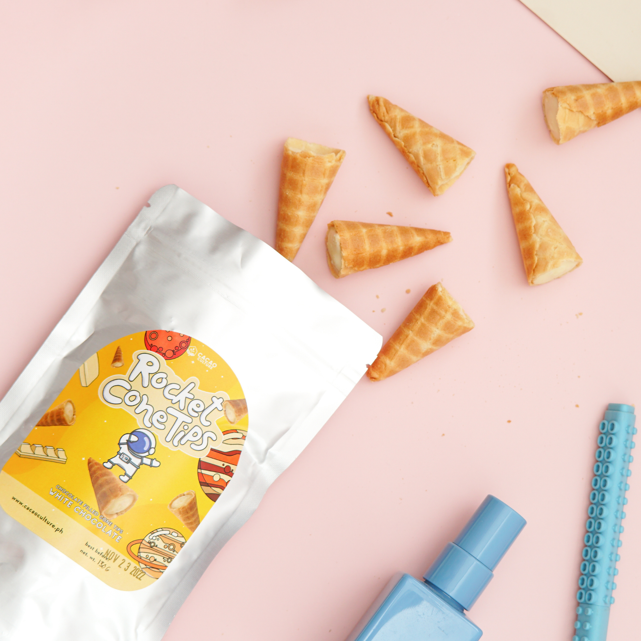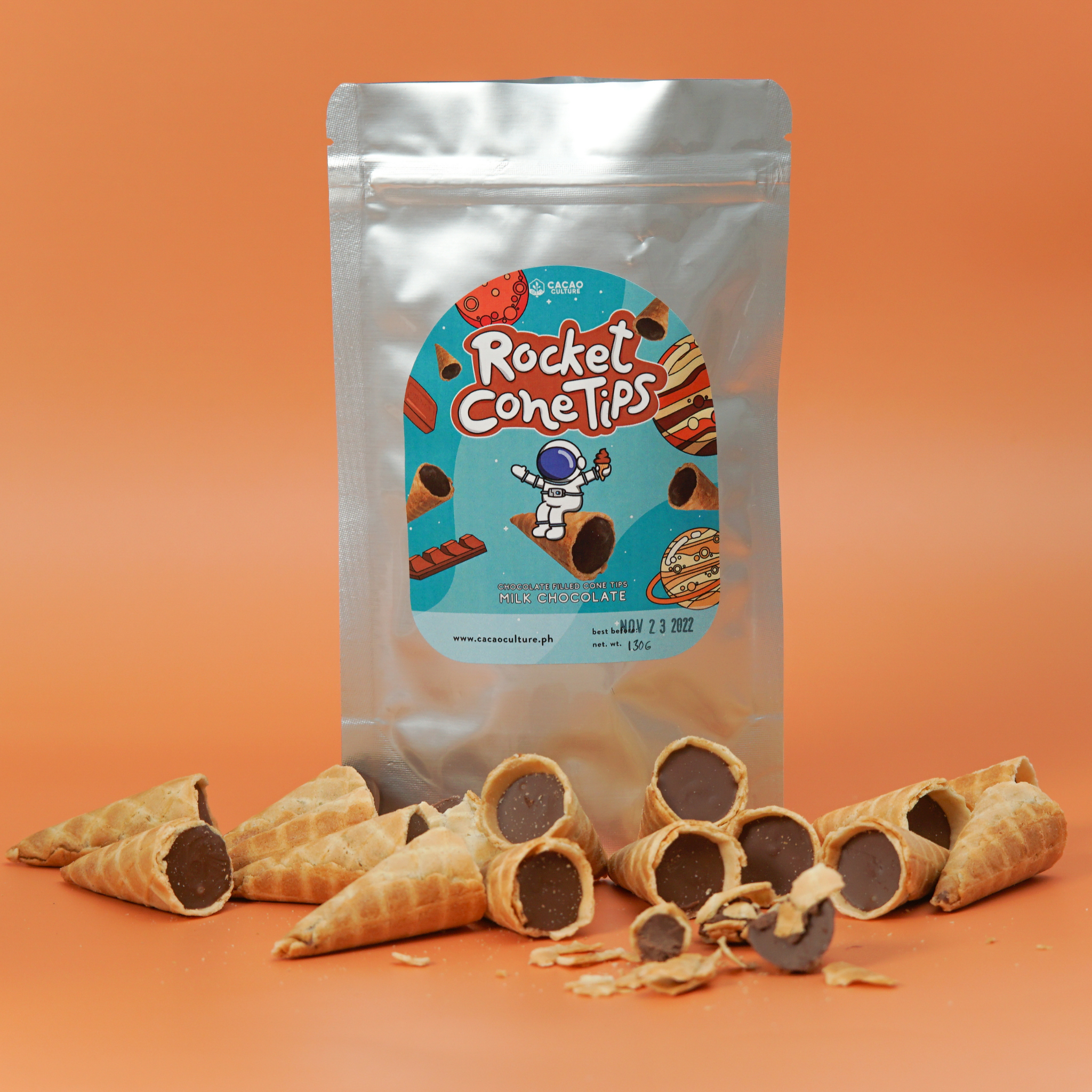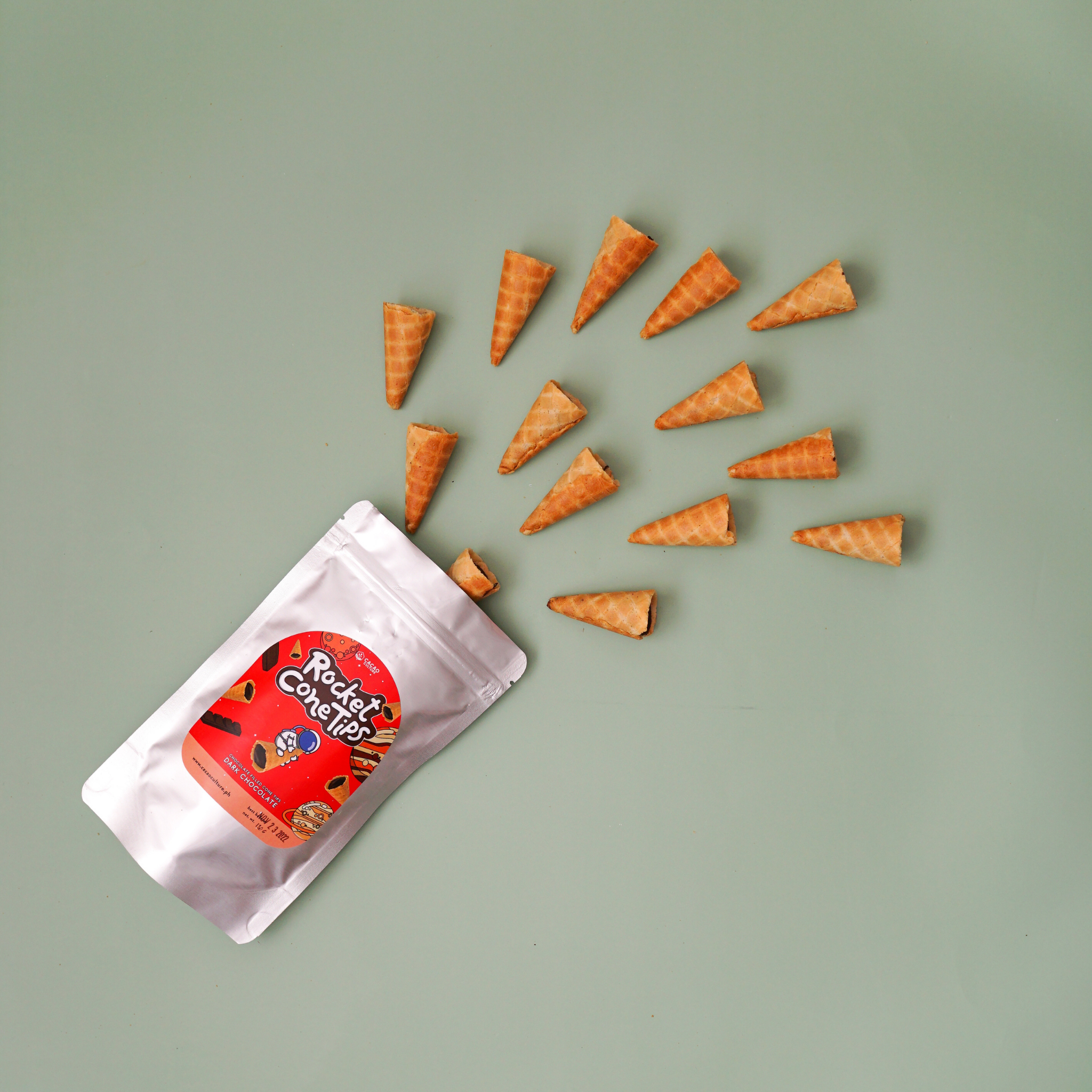 A delightful treat inspired by the joy of the chocolate-filled ends of ice cream cones. Handcrafted with love and infused with authentic Philippine chocolate, these bite-sized waffle cone tips promise a moment of pure indulgence for every age group.