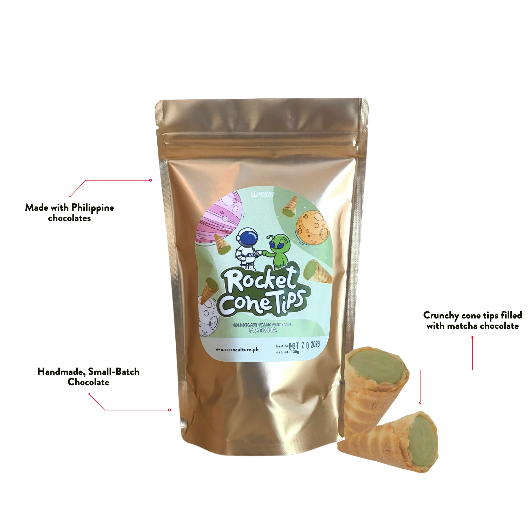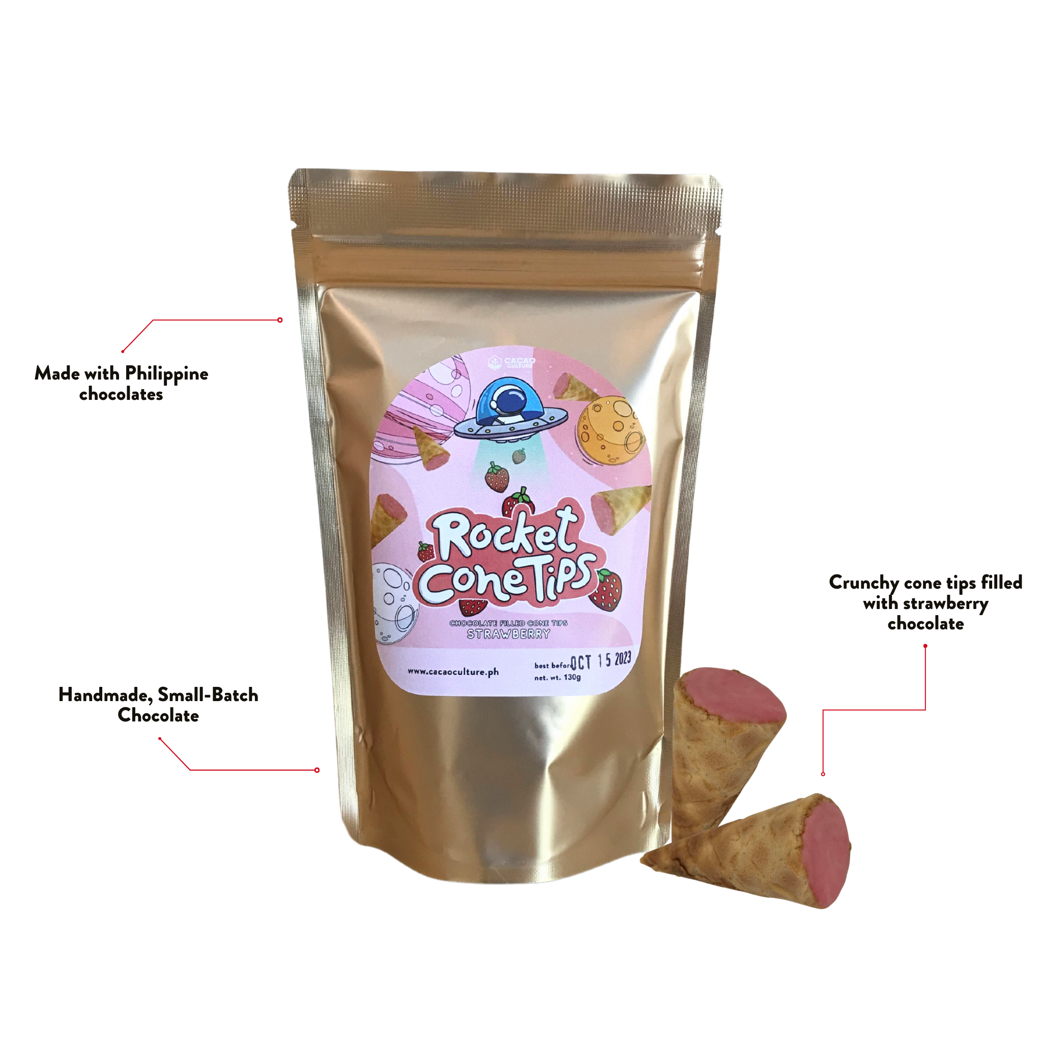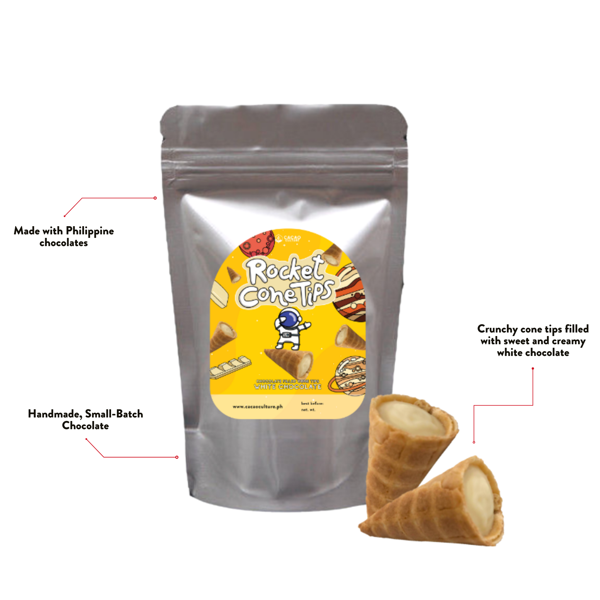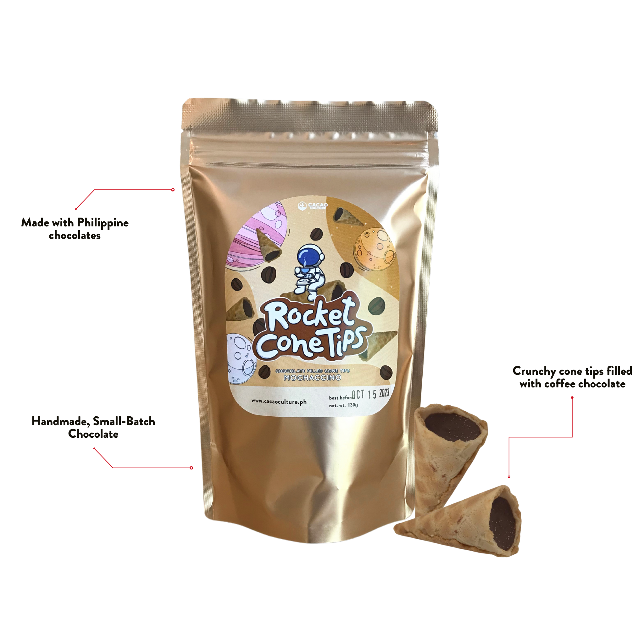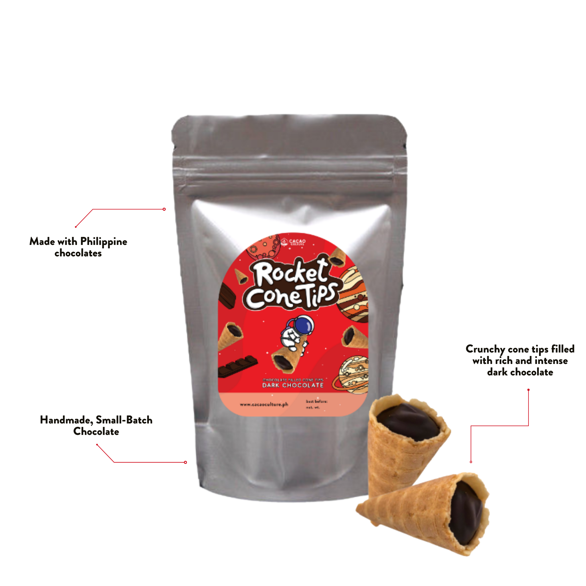 A delightful treat inspired by the joy of the chocolate-filled ends of ice cream cones. Handcrafted with love and infused with authentic Philippine chocolate, these bite-sized waffle cone tips promise a moment of pure indulgence for every age group.