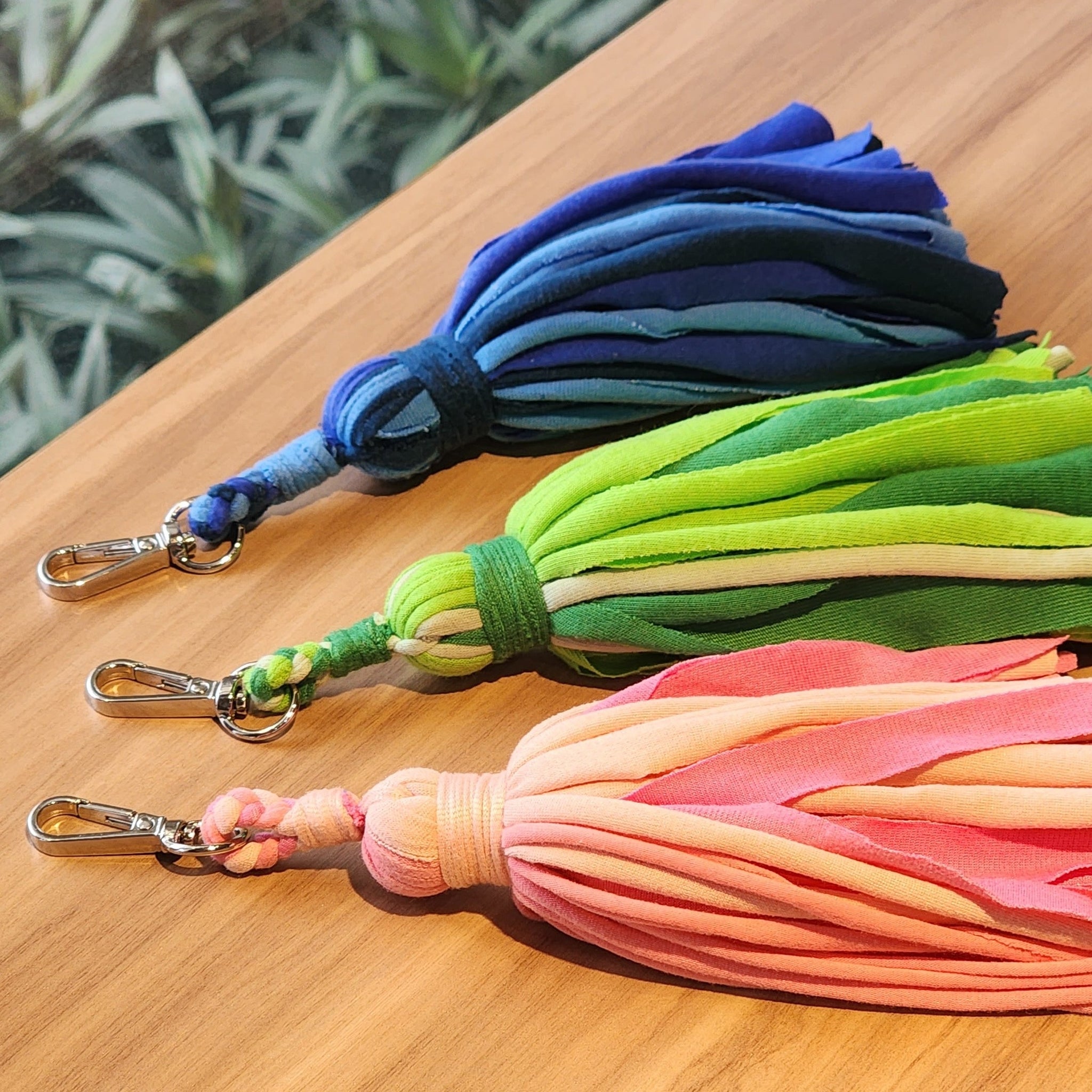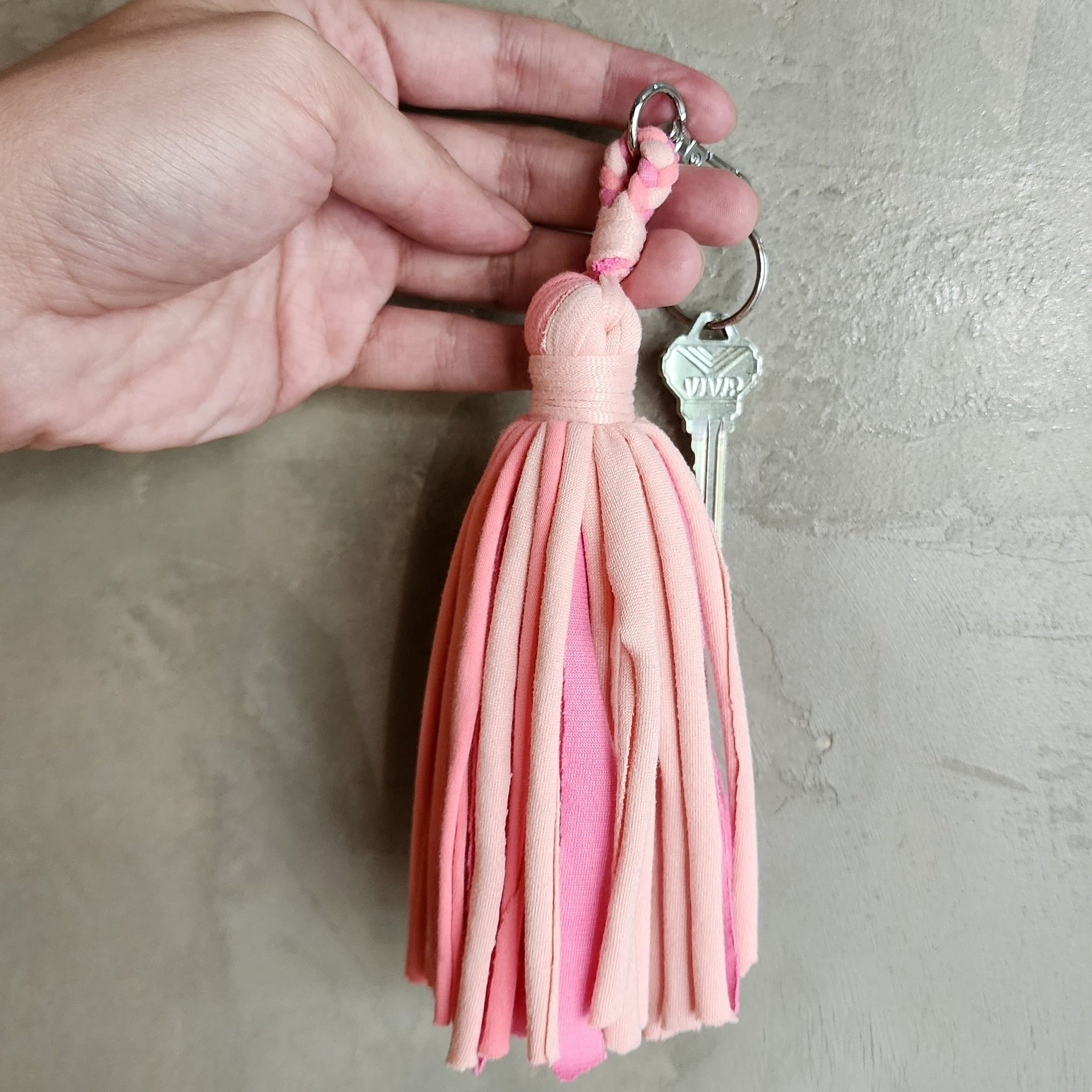 This macramé wristlet keychain is an essential accessory to secure your keys and go hands-free! It slides easily onto your wrist and stays put, so you never need to search for your keys.