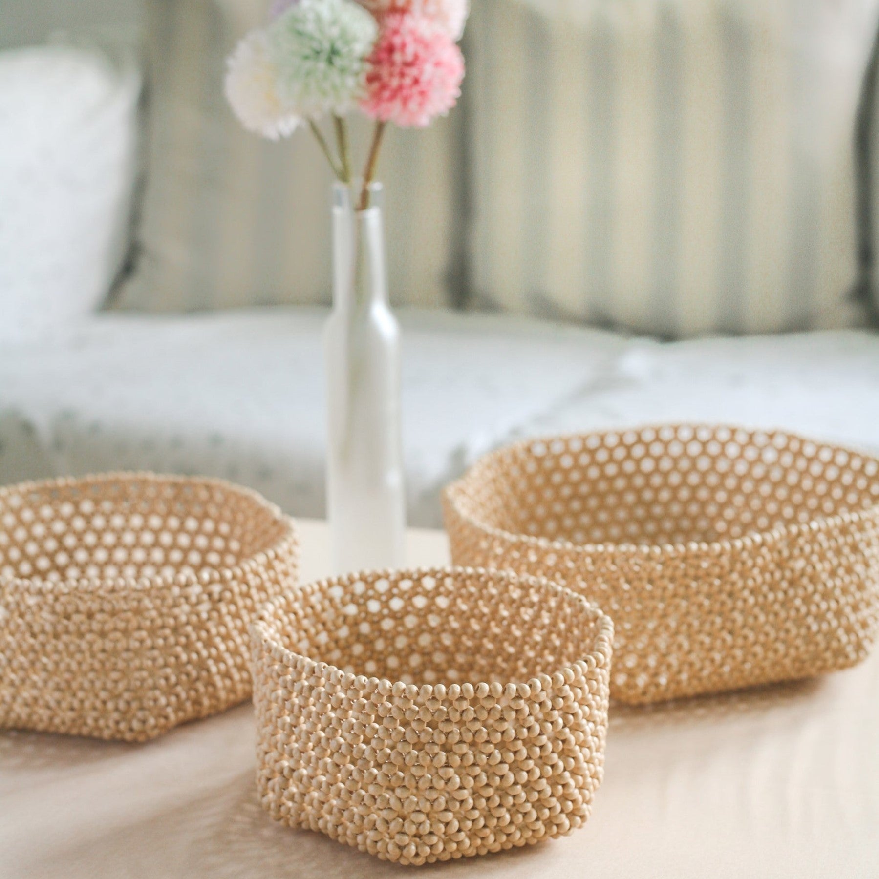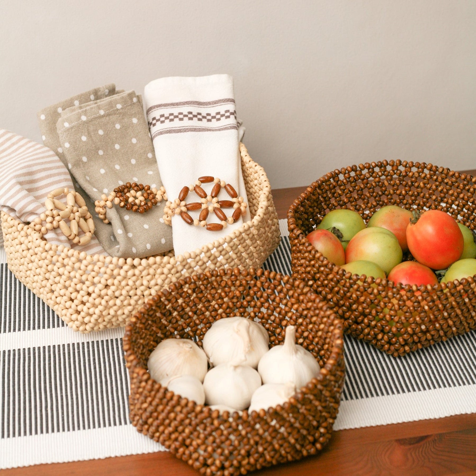 HABI Multipurpose Beaded Basket Tray