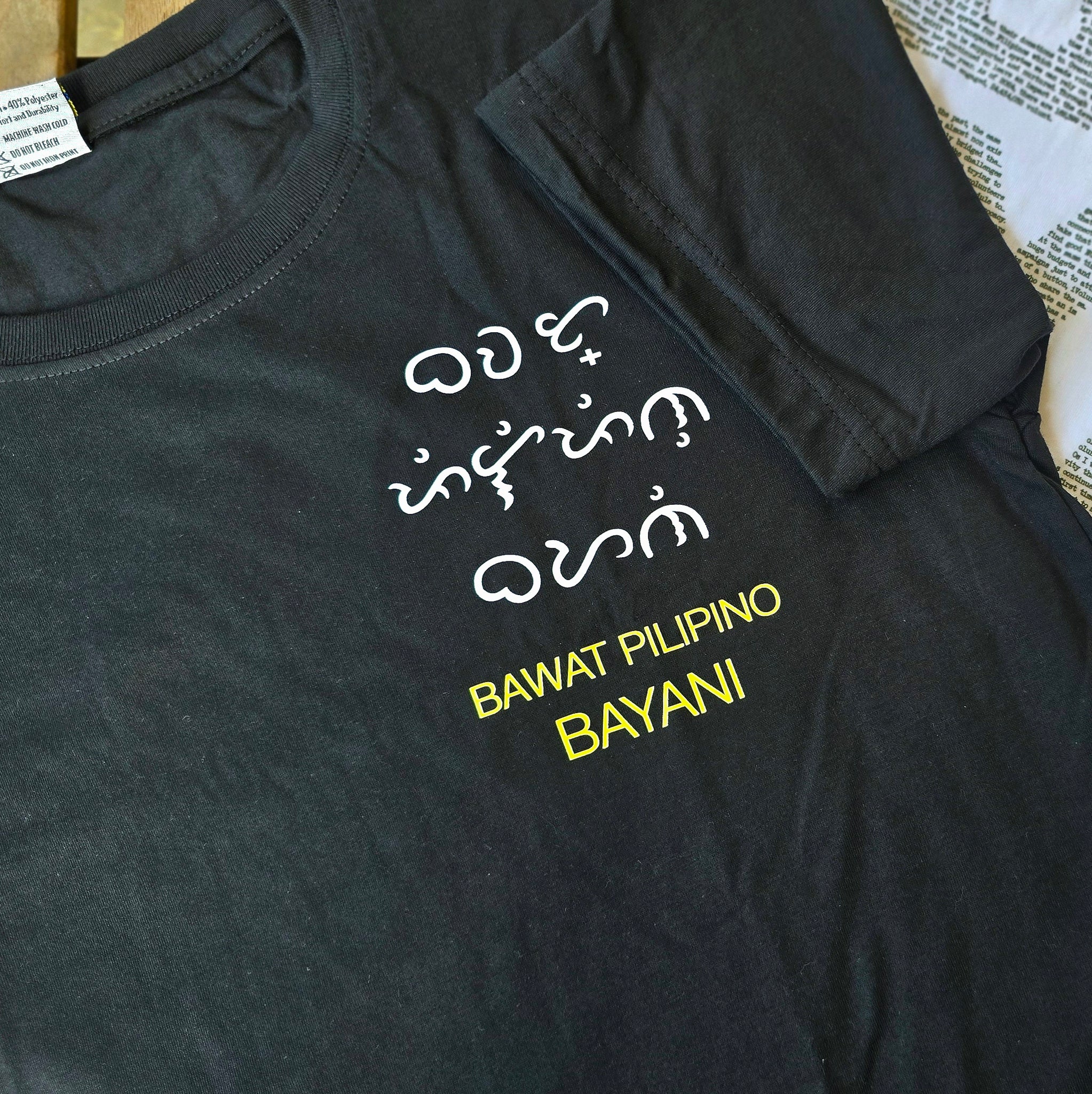Let's be proud of our heritage. This shirts translates Bawat Pilipino Bayani into our Filipino traditional writing of Baybayin.