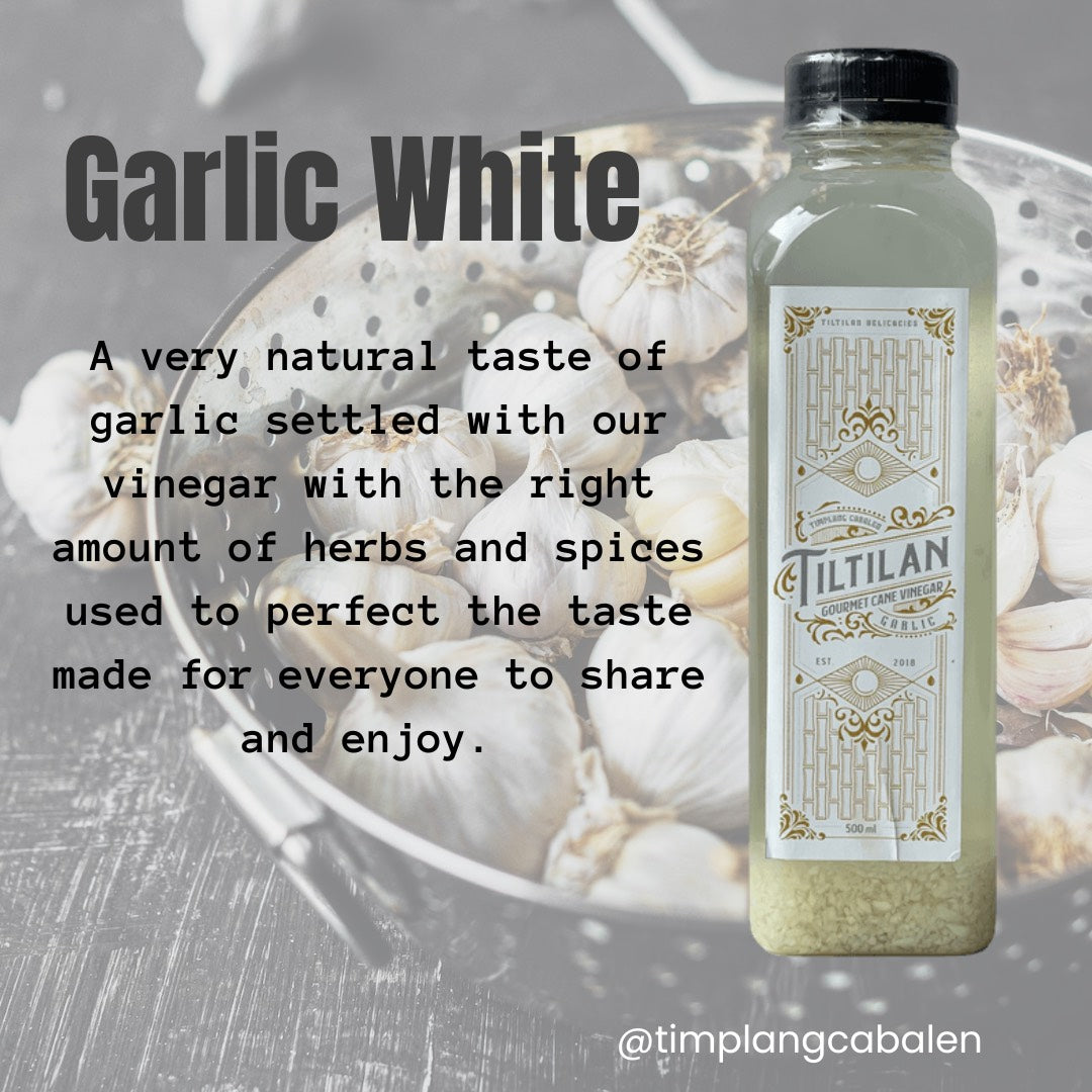 Garlic White - A very natural taste of garlic settled with our vinegar with the right amount of herbs and spices used to perfect the taste made for everyone to share and enjoy. It is complementary for tasty food that you want to add a little more twist.