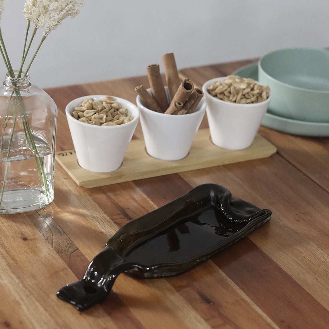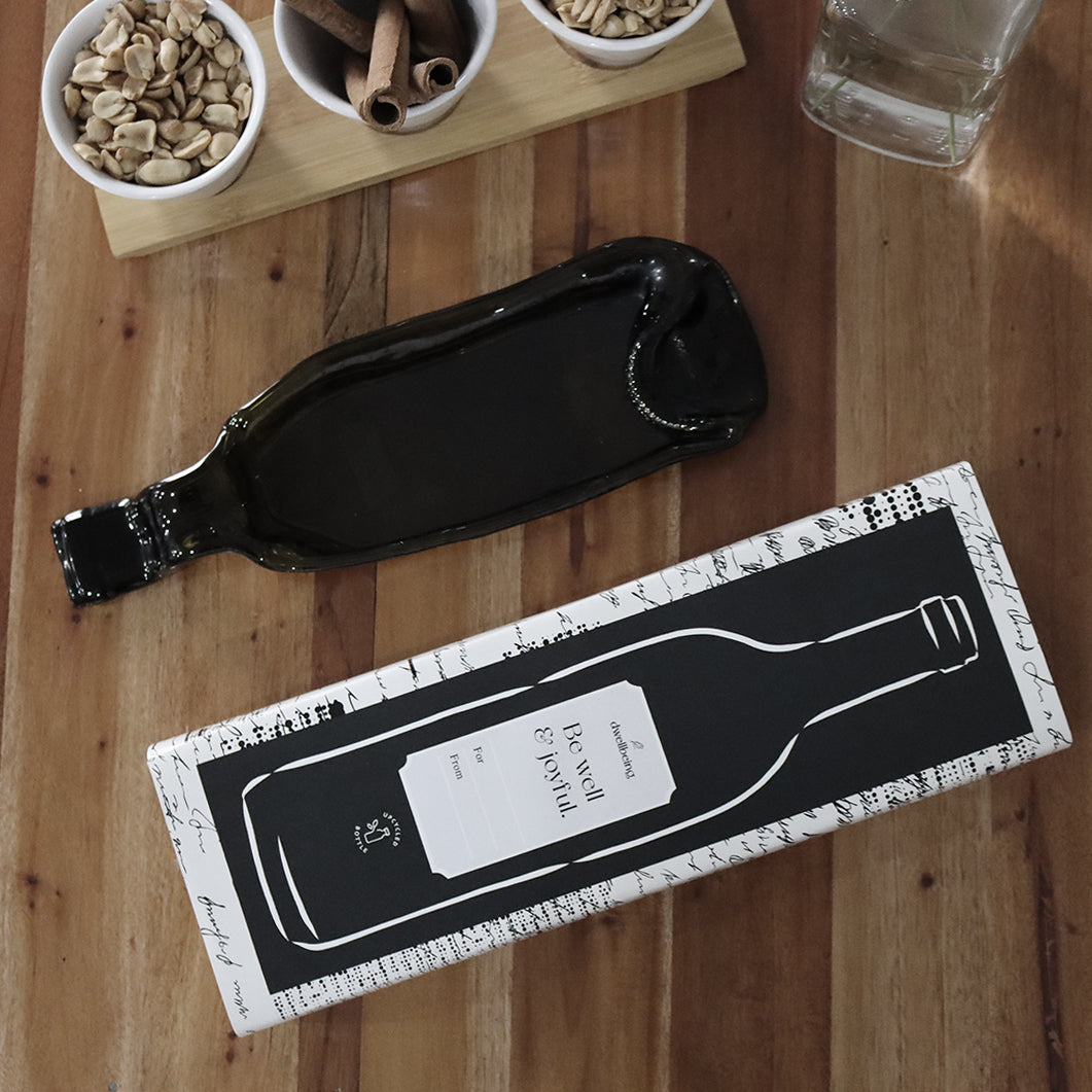 Upcycled wine bottle, kiln-fired by our Negros artisans through a 14hrs melting process.