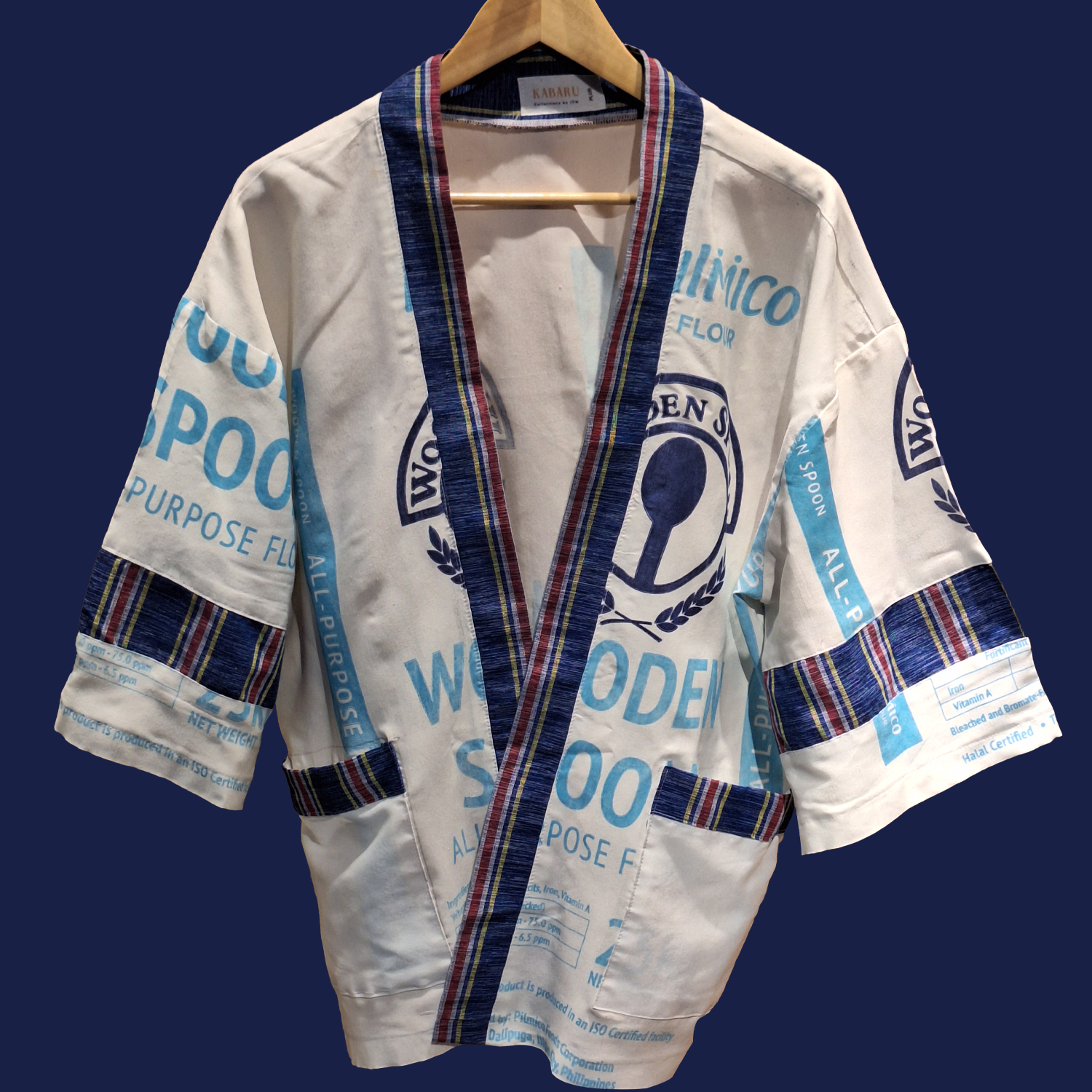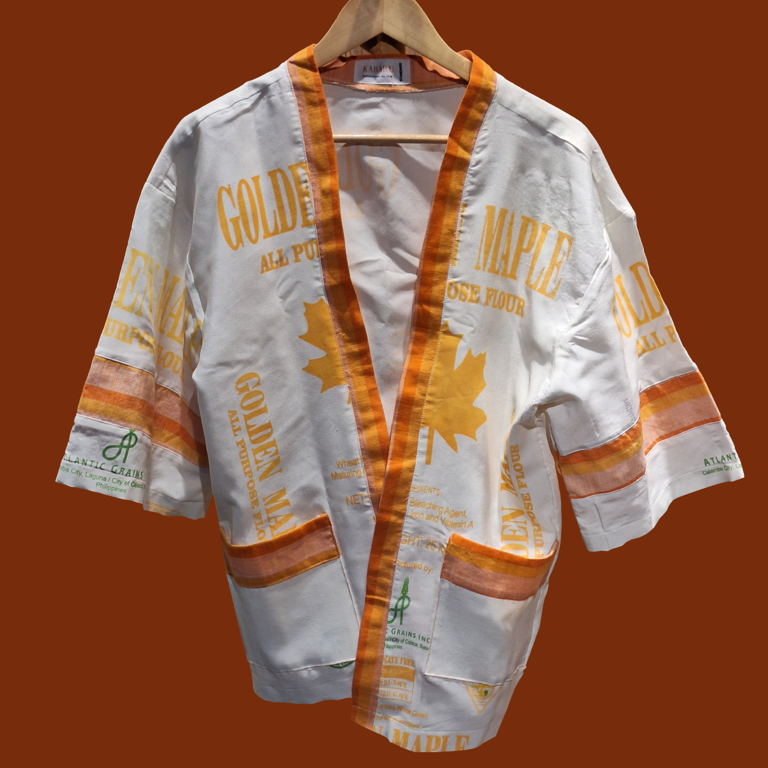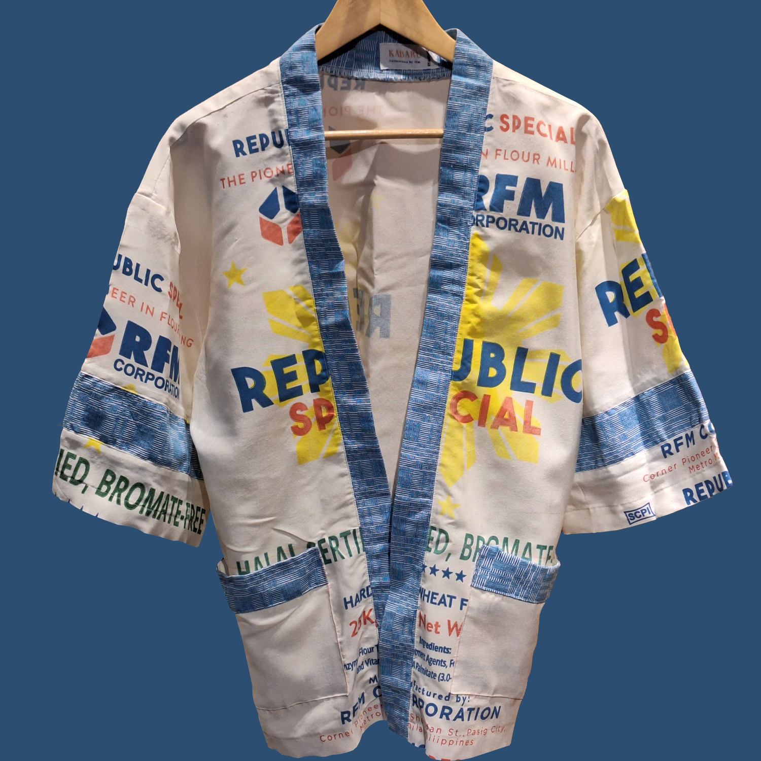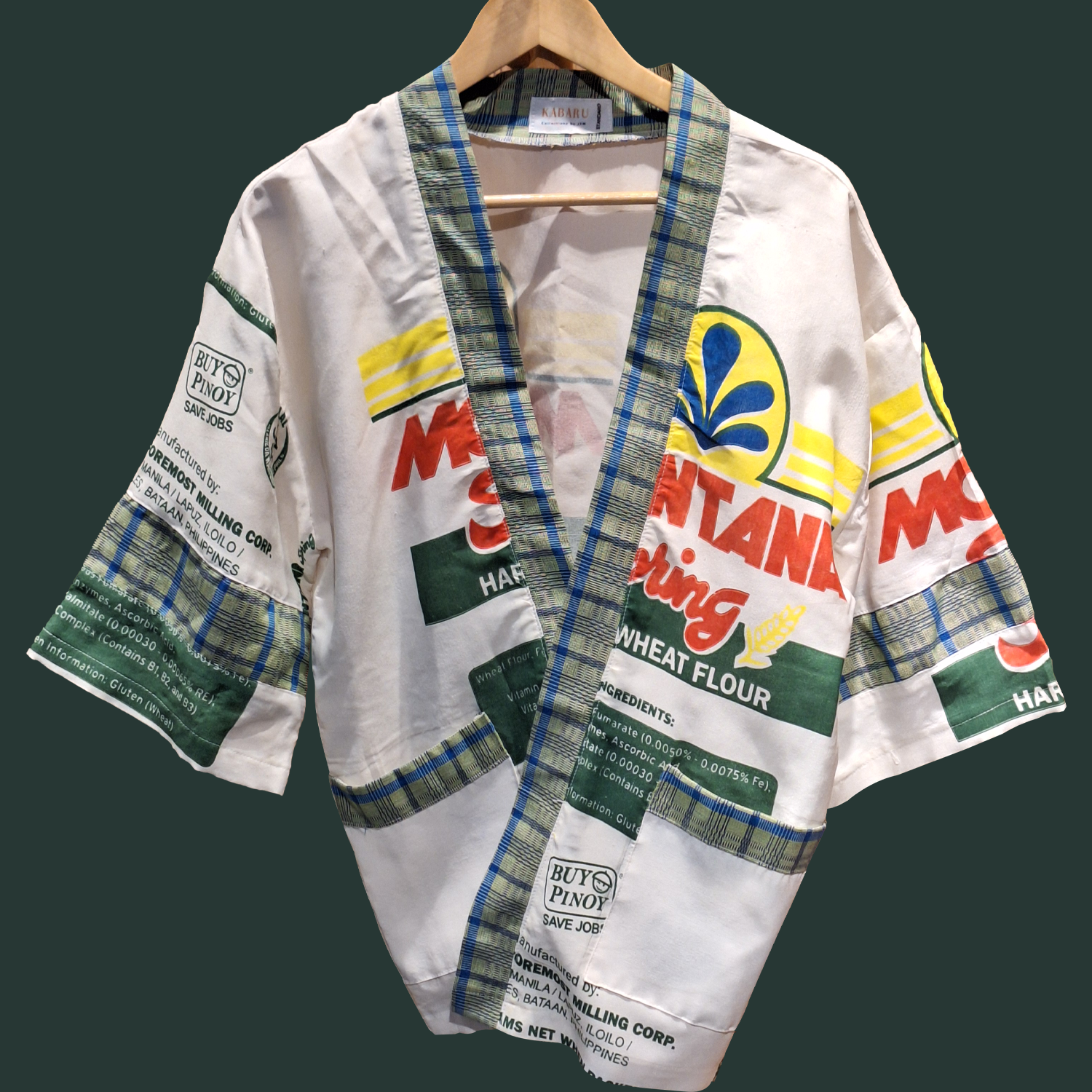 Made from upcycled flour sacks (katsa) and trimmed with vibrant scraps of handwoven Filipino textiles, the Katso Kimono is where sustainability meets culture. Each piece is handcrafted by local artisans, mostly senior citizen seamstresses, giving new life to materials that would otherwise go to waste.